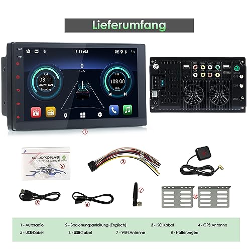IFreGo Autoradio Android 10 con navigazione, autoradio 7 pollici 2 DIN Autoradio Bluetooth, radio FM, MP5, USB/AUX, WiFi/GPS/telecamera posteriore/collegamento specchio/RDS/comando al volante