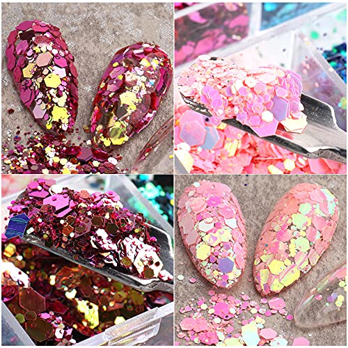 【Regalo perfetto】Ci sono molti tipi di paillettes per unghie, che sono molto adatti per le persone a cui piacciono le nail art o le idee fai-da-te.Regalo fantastico per amici e familiari che amano fare nail art. Adatto per uso professionale o domestico.