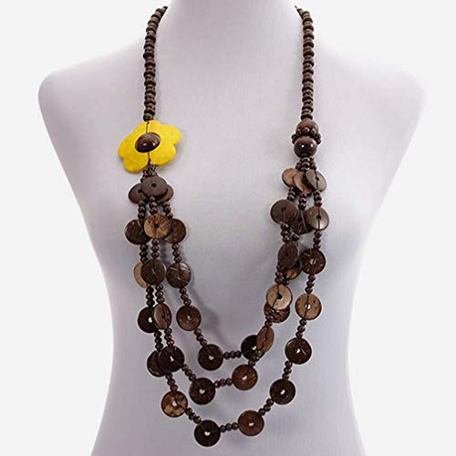 Ifundom Retro Collana della Boemia Guscio di Noce di Cocco Collana di Perline di Legno della Collana Vintage A più Strati del Pendente del Maglione della Collana della Collana del Collare