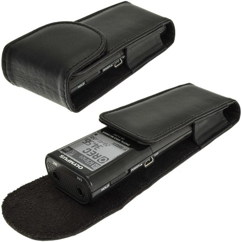 Igadgitz Nero Vera Pelle Custodia Case Cover per Olympus VN-713PC, VN-732PC & VN-8600PC Registratore Digitale Vocale