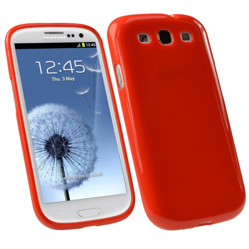 IGadgitz Rosso Custodia TPU Gel Case Cover Rigida Protezione per Samsung Galaxy S3 III i9300 Android Smartphone + Protettore Schermo