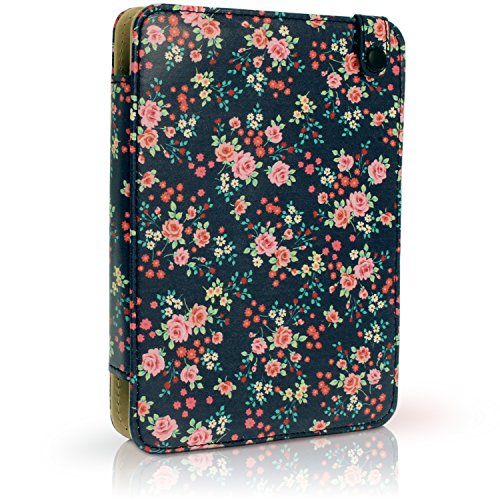 Igadgitz U3697 Folio Custodia PU Pelle Compatibile con Kobo Touch 2, GLO HD 2015, Aura & Aura Edition 2 Case con Supporto & Cinturino - Rosa Floreale