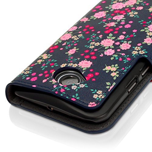 Igadgitz U3886 Custodia PU Pelle per Motorola Moto E 2a Generazione XT1564 Libro Cover - Floreale