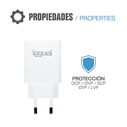 Iggual - Caricatore Cellulare Rapido da Parete | Ingresso USB tipo A (12W) | Compatibile con Tutti i Dispositivi Mobili - Colore Bianco