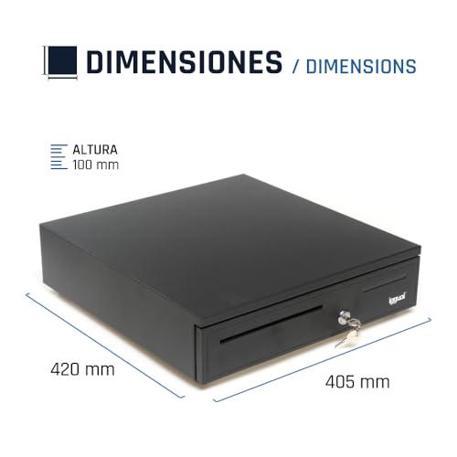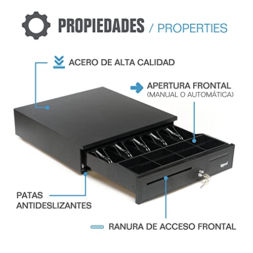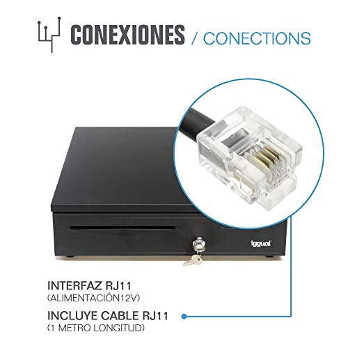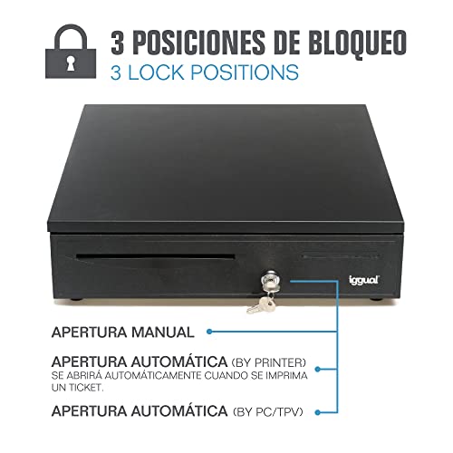 Iggual - Cassetto Porta Denaro per Cassa IRON - 50 | Registratore di Cassa con Apertura Manuale o Automatica - 5 + 8 Scomparti per Banconote e Monete, con Serratura in 3 Posizioni - Colore Nero