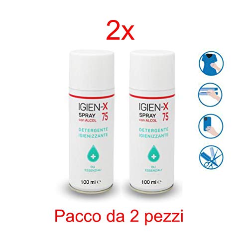 IGIEN-X Spray Detergente Igienizzante Multiuso con Alcol 75% Germicida - 2X 100ml (2 PEZZI)