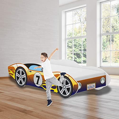 IGLOBAL Letto per bambini Cars, letto per ragazzi con rete a doghe, materasso in schiuma 140 x 70 cm, camaleonte