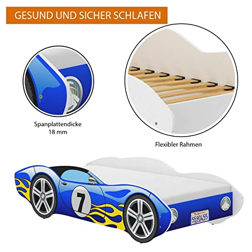 IGLOBAL Letto per bambini Cars, letto per ragazzi con rete a doghe, materasso in schiuma 140 x 70 cm, blu
