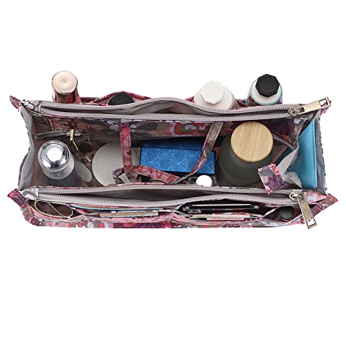 IGNPION - Borsa con 13 tasche espandibili, con inserto stampato, fodera per borse espandibile, con chiusura a cerniera e manico, utilizzabile anche per pannolini, Peonia. (Multicolore) - IGN0028