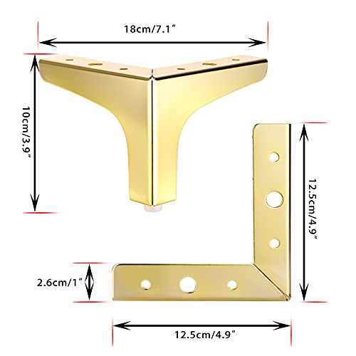 IGNPION Gambe per divano in metallo da 10 cm, 4 piedini per mobili moderni, mobili da divano, gambe per mobili fai da te, piedini di ricambio per mobili TV, mobili ottomani, divano, armadio, oro