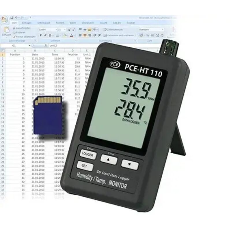 Igrometro con datalogger PCE-HT110 per la registrazione prolungata di temperatura e umidità relativa