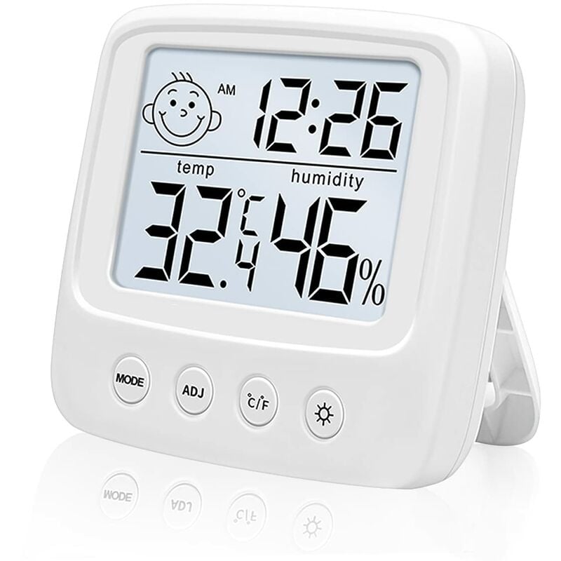 meno del 40% o più del 70% di umidità mostra una faccia triste, assicurati di essere sempre consapevole dei cambiamenti nella tua casa con un semplice sguardo a questo sensore di umidità. < p>Precisione affidabile: temperatura ambiente del termometro: -50 ℃ ~ + 70 ℃ (-50 ℉ ~ + 70 ° C), precisione di misurazione della temperatura: ± 1,0 ℃ (± 16,8 ° C), risoluzione della temperatura: 0,1 ℃. Intervallo di umidità misurabile: 10% RH ~ 99% RH, precisione di misurazione dell'umidità: ± 5% UR, risoluzione umidità: 1% UR. Multifunzione: questo termometro igrometro per la cameretta non solo può misurare la temperatura interna ed esterna, ma è anche dotato di