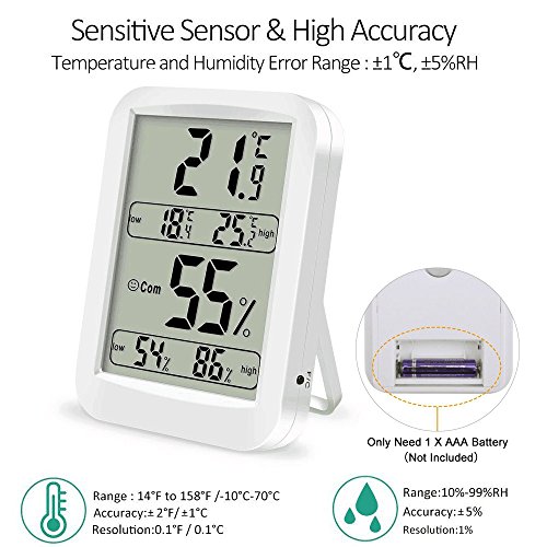 Igrometro a termometro digitale, Laufen grande LCD interno termometro igrometro monitor temperatura e misuratore di umidità per il comfort Home Office
