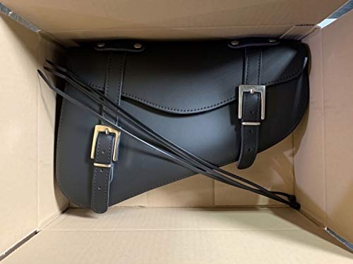 ALTA QUALITÀ - Realizzata in pelle di 3 mm con trattamento idrorepellente e protezione antincendio, cuciture e rivetti robusti, tre ganci posteriori senza fori nella bisaccia per evitare la penetrazione dell'acqua in eccesso.