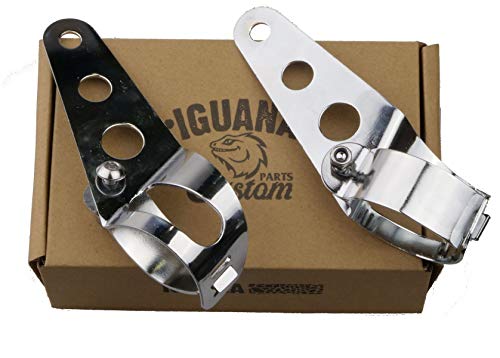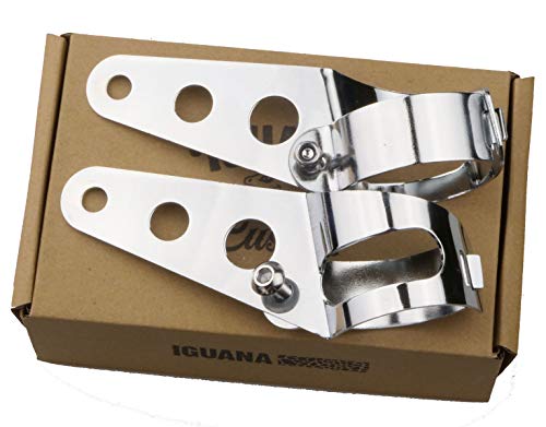 IGUANA CUSTOM Parts - Confezione di staffe cromate universali per fissare fari di moto, frecce o cupole, per forcelle da 35 mm a 43 mm