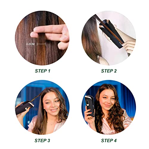 Arricciacapelli senza fili con batterie integrate, 2 pezzi da 2600 mAh. Ricarica per 2 ore e uso continuato senza fili per 35 minuti ti consentiranno di portare la piastra in giro con te per sistemare la piega ovunque ed avere ricci sempre perfetti.