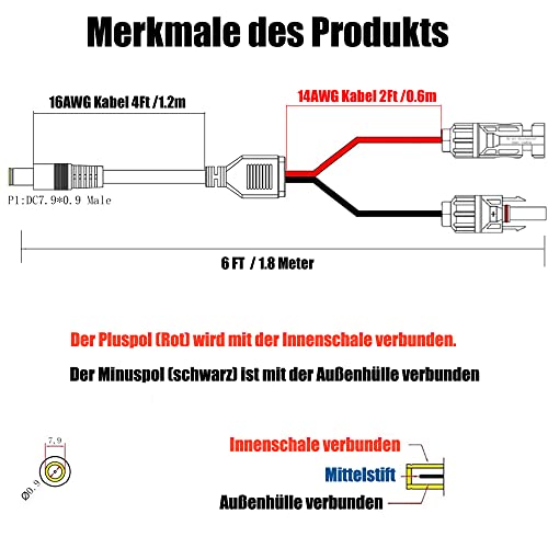 【 Viaggio con facilità】 Cavo di prolunga da 1,8 m con connettore DC, distanza di collegamento più lunga, pratico per il collegamento al pannello solare e la regolazione della posizione migliore durante la ricarica.