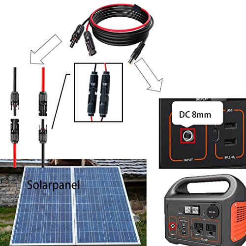 Modello compatibile consigliato: cavo di prolunga solare perfetto compatibile con Jackery Explorer 160 240 500 1000 e BLUETTI EB70 EB3A e pannello solare. Generatori solari/alimentazione mobile per esterni con presa DC da 8 mm. Adatto per il collegamento di cavi fotovoltaici e periferiche per corrente continua.
