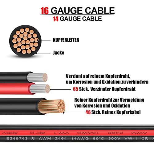 Cavo da 16 e 14 AWG, spesso e durevole: il filo principale è un filo di rame da 16 AWG e il filo di rame da 14 AWG, molto durevole.