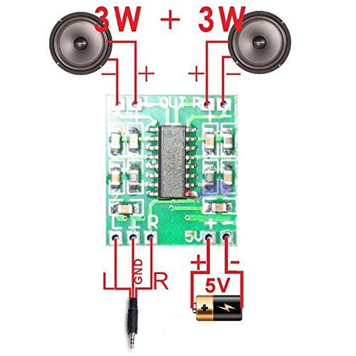 Dual-channel stereo, 5V power supply can output 3W +3 W power, can be directly driven 4Ω, 8Ω small speakers, the output power, enough energy, good sound quality.