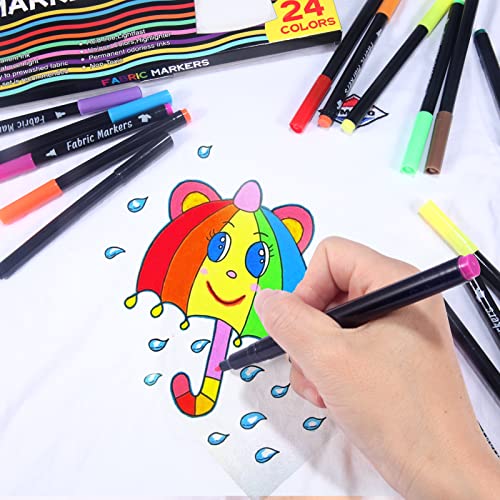 Ihaspoko Pennarelli per Tessuti, 24 Colori Penne pennarelli Tessuto Indelebili per Magliette Jeans Cappelli Borse di Tela Scarpe, Textile Marker Lavabile per Dipingere e Scrivere