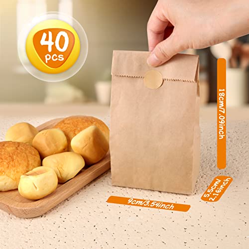 Pacchetto Incluso: 40 pezzi piccolo sacchetto di carta marrone e adesivi rotondi, dimensioni 9x5.5x18cm/(LxWxH). Perfetti come sacchetti per bomboniere, sacchetti per dolcetti.