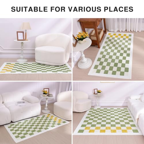 【Design moderno ed elegante】Il tappeto da salotto per la camera da letto presenta un semplice motivo stampato con uno stile unico a scacchiera nei colori verde, giallo e crema che aggiungerà stile e fascino alla vostra camera da letto.
