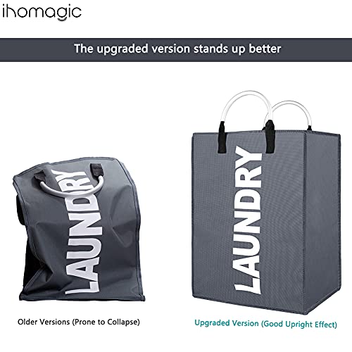 IHOMAGIC Unico Grandi Ceste per la Biancheria, Raggruppabili Sacchi da Biancheria - Portabiancheria Pieghevole con Manico, Cesta del Bucato Comodo per Hotel, Deposito Familiare 62L (Grigio Scuro)