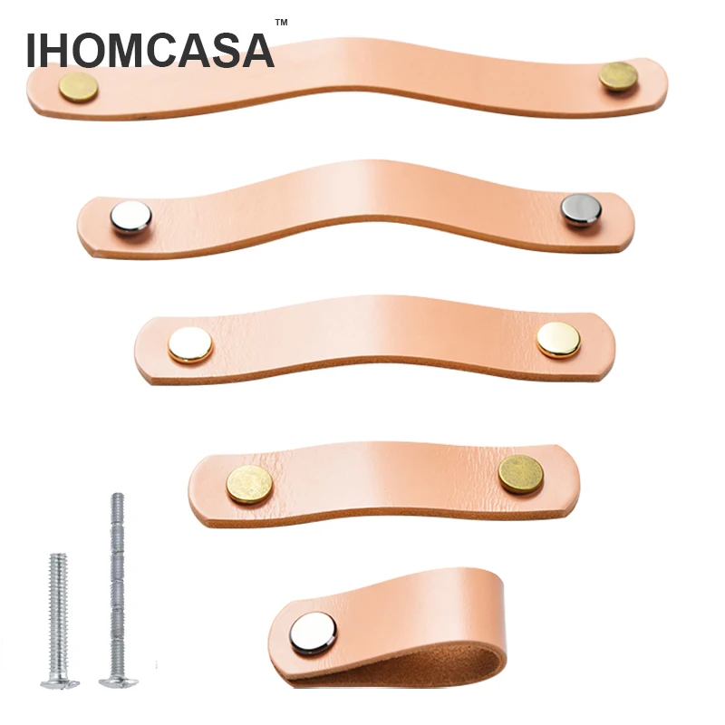 IHOMCASA Pink Cowhide Handle Furniture Drawer Children's Room Door Knob Kitchen Cupboard Shoe Cabinet Leather Pulls Modern Style
