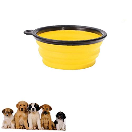 IHOMIKI Pieghevole in Silicone Pet la Ciotola del Cane del Gatto di Viaggio mangiatoie Pieghevole Ciotola del Cane con Appeso buca con Fibbia Alpinismo Esterna Giallo e Nero