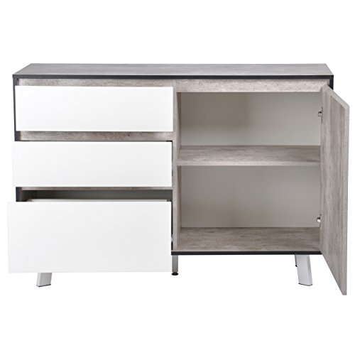Ihouse Credenza con 1 anta e 3 cassetti, stile scandinavo retrò, per camera da letto e soggiorno, mobile moderno color marmo