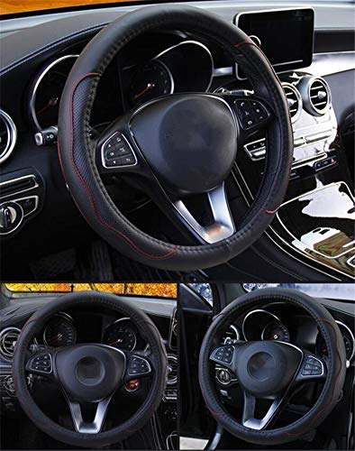 Ihreesy Coprivolante per auto, Coprivolante per Auto in Pelle Microfibra Universale Coprivolante per Auto Morbido Antiscivolo Fashion Coprivolante Confortevole,Nero rosso