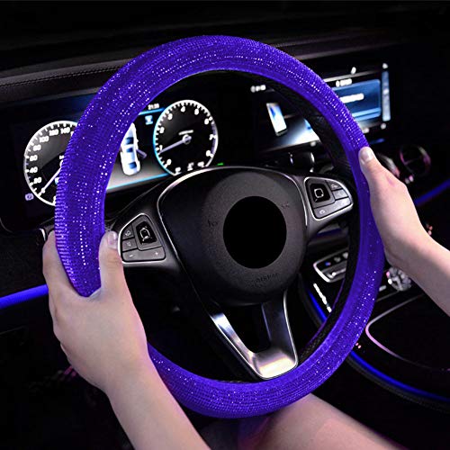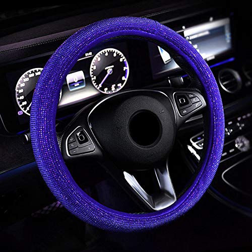 Ihreesy Coprivolante Universale per Auto,Bling Bling Coprivolante in pelle PU Blu Strass Artificiali Coprivolante Protezione Volante Antiscivolo Universale 38cm Coprivolante