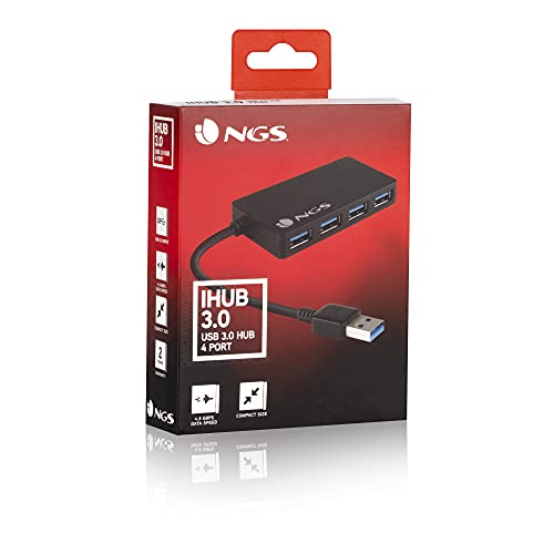 NGS USB IHUB3.0 - Hub USB 3.0 con 4 Porte, Trasmissione Fino a 5 Gbps, Colore Nero
