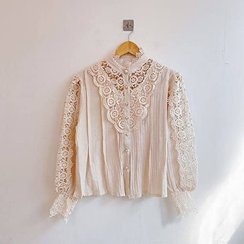 Iikey Camicie Donna Maniche Lunghe di Pizzo Collo Alto Top Casual Elegante Blusa Donna Elegante Camicia Donna Manica Lunga Camicetta Donna Elegante per Primavera E Autunno