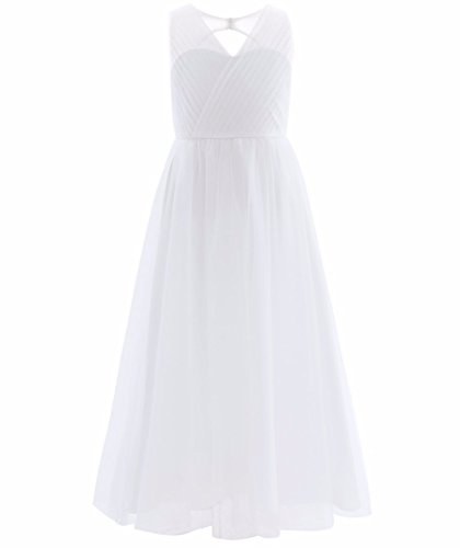 Iiniim Ragazza Bambina Vestito da Principessa Elegante per Cerimonia Nuziale, Spettacolo, Damigella d'Onore, Festa di Compleanno 4-14 Anni Bianco 14 Anni