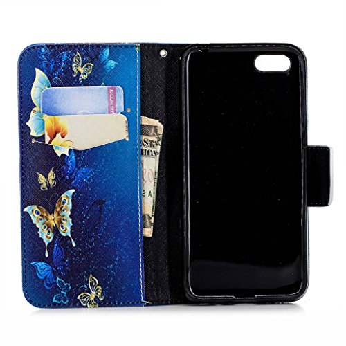 IJIA Case Custodia per Huawei Y5 2018 / Honor 7S (5.45"), Farfalla TPU + PU Pelle Silicone Gel Slot Caso per Portafoglio Fessura per Carta di Credito Cover Book Flip Stile Vintage-BF43