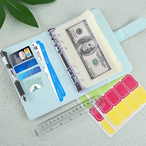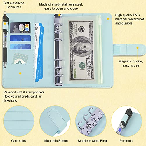IJIAMY Raccoglitore ad anelli in pelle PU, formato A6, Budget Binder, Budget Planner, raccoglitore per denaro, raccoglitore per banconote (blu)