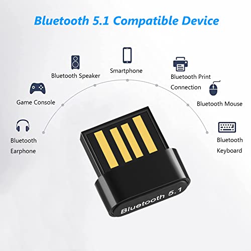 IJiZuo Adattatore Bluetooth 5.1 USB 2.0, Bluetooth Trasmettitore e Ricevitore, per PC, Laptop, Desktop, Mouse, Tastiera, Cuffie, Controller, Stampante, Auricolari, Smartphone Supporta Win 10/8.1/8/7.