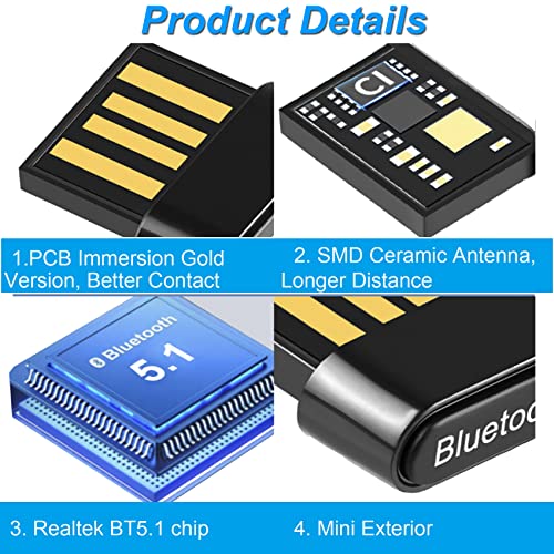 【Tecnologia Bluetooth 5.1】Il ricevitore Bluetooth adotta la tecnologia BT 5.1 di frontiera, velocità di trasmissione fino a 3 Mbps, raggio di trasmissione 20 m, riduzione di problemi come connessioni instabili del dispositivo e interruzioni del segnale. Questo adattatore USB 5.1 è compatibile anche con Bluetooth 3.0 / 2.1 / 2.0 .