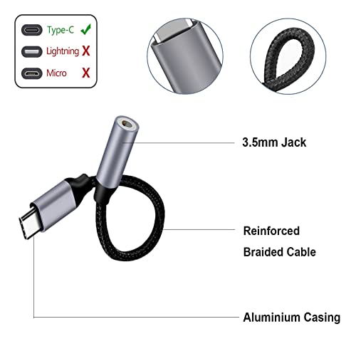 IJiZuo Adattatore USB C a Jack 3.5 mm, Adattatore USB Type-C Connettore Jack da 3,5mm per Cuffie Stereo Cavo Audio, con DAC Chipset, per Samsung S21/S21+/S21, Huawei P30 P40(Nero)