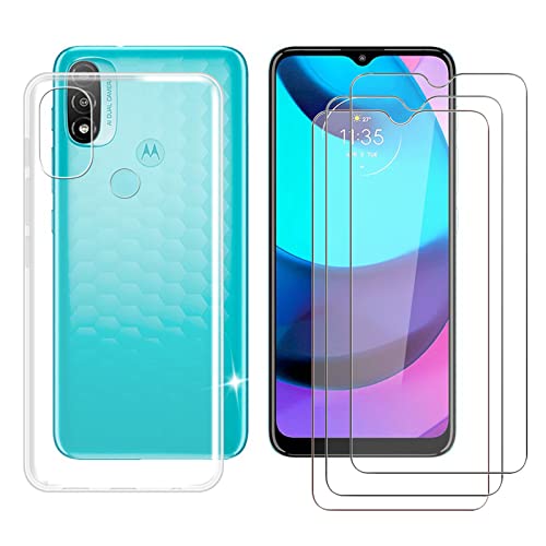 IJTYHF 3 Pack Vetro Temperato Pellicola Vetro Glass Film + Cover per Motorola Moto E20 XT-2155, Aruba (6.50 Pollici) Custodia Silicone Trasparente TPU Case Shell Skin Bumper