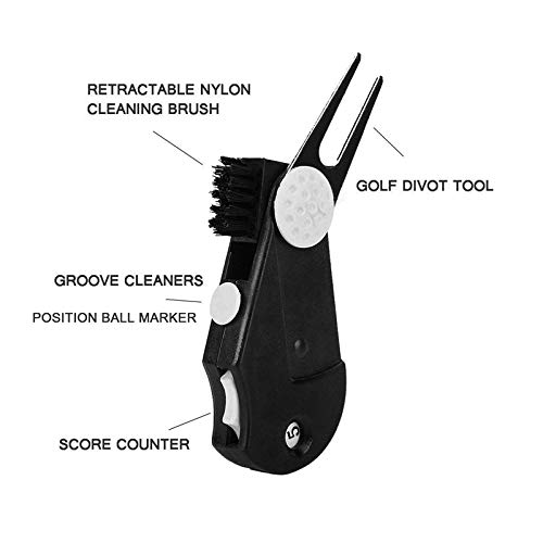 IKAAR Golf Divot Tool Pieghevole Golf Divot Strumento di Riparazione Strumento Portatile Multifunzione di Riparazione Golf Accessori Golf per Uomini Nero