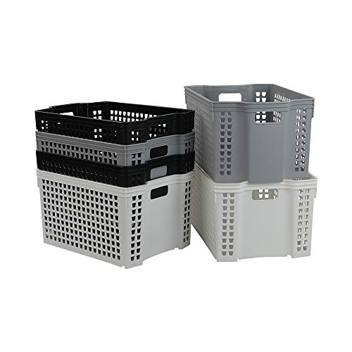Ikando Cestini Portaoggetti Plastica, Nero, Grigio e Bianco, 6 Pacchi