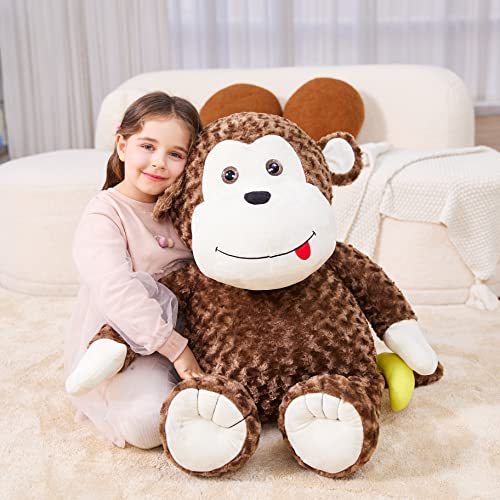 IKASA Scimmia Peluche Gigante Giocattolo Morbido,Animali di Peluche XXL XL Grande Giganti Enorme 78cm Teneri Enormi Jumbo Morbidosi Animale Grasso,Regali per Bambini Ragazze Ragazz (Marrone, 78cm)