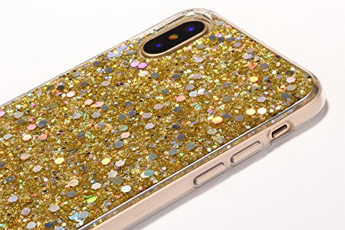 Ikasus - Custodia per iPhone X, custodia per iPhone X, con brillantini luccicanti in polvere 3D, sottile, flessibile, in gel di gomma morbida e TPU, per iPhone X, colore: oro