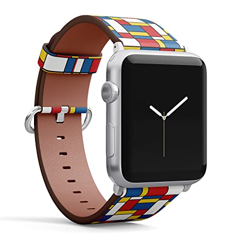 IKIKI-TECH Compatibile con Apple Watch Band 42 mm, 44 mm, 45 mm, 49 mm (modello moderno stile Mondrian) Cinturino di ricambio in pelle vegana per iWatch serie 8, 7, 6, 5, 4, 3, 2 1 Ultra SE