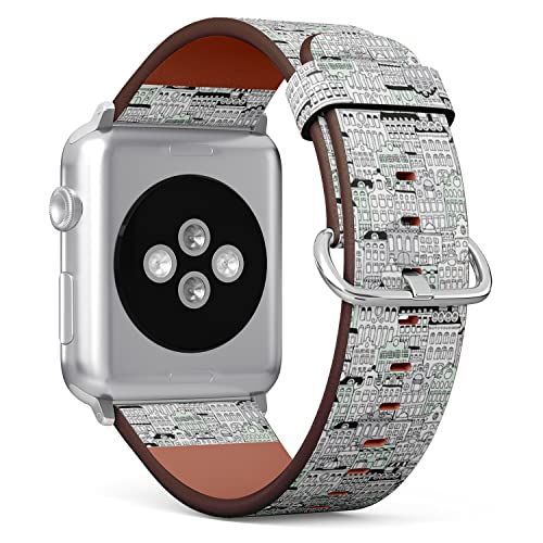 IKIKI-TECH Compatibile con Apple Watch Band 42 mm, 44 mm, 45 mm, 49 mm (motivo olandese di Amsterdam Streets) Cinturino di ricambio in pelle vegana per iWatch Series 8, 7, 6, 5, 4, 3, 2 1 Ultra SE