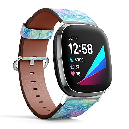 IKIKI-TECH Per Fitbit Versa 3 / Fitbit Versa 4 / Fitbit Sense / Fitbit Sense 2 (motivo foglie palma) cinturino in pelle vegana di ricambio