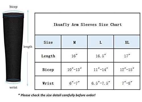 IKUAFLY Manicotti Ciclismo, Manicotti Compressione da Ciclismo Protezione UV Sole Antiscivolo per Ciclismo Escursionismo Golf Basketball Guida Tennis (Nero, XL)